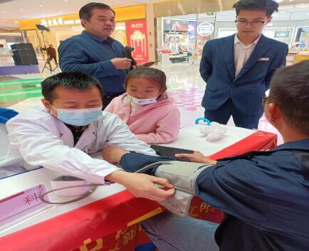 张辉副主任为社区就诊的居民耐心询问病史、认真体查,给出初步诊疗意见及治疗方案,韦彪副主任为居民测量血压,并宣传健康的生活方式。